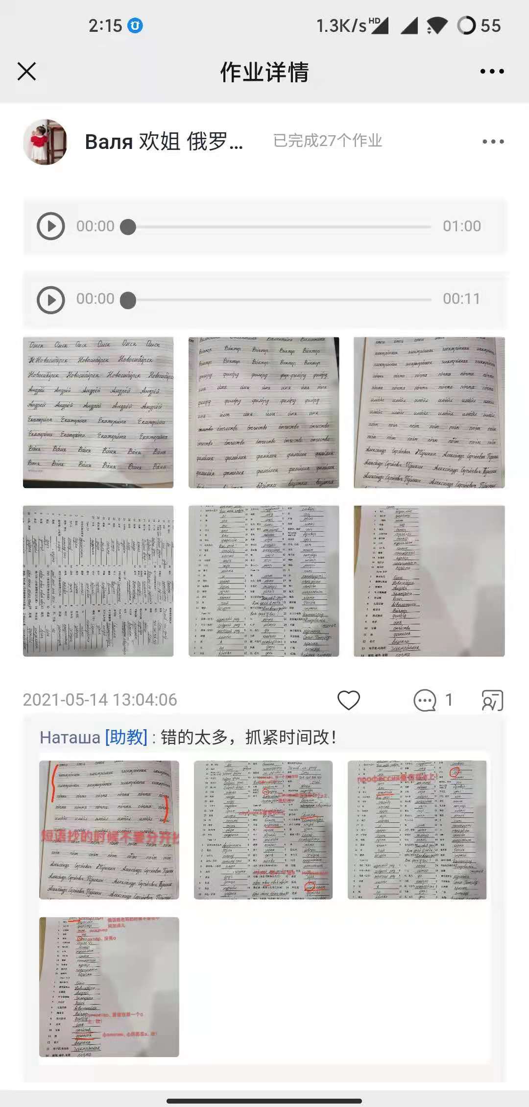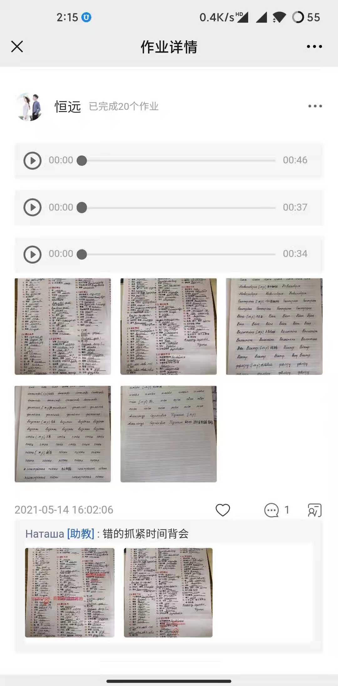 俄语并不好学,这是一个事实。我们的直播课不会赶进度,老师会根据班级同学的整体情况调控教学速度,扎扎实实讲完一本教材为止,每周上三次课,上课时间20:00-21:30,一册书可能会有半年及以上的教学周期。每节课上完课,老师会布置作业,给同学发本节课中的新单词总结和录音。同时还有阶段的学习检测,考察每一个同学真正的学习水平。所以在上课的这些时间,你每天的学习任务是很大的。