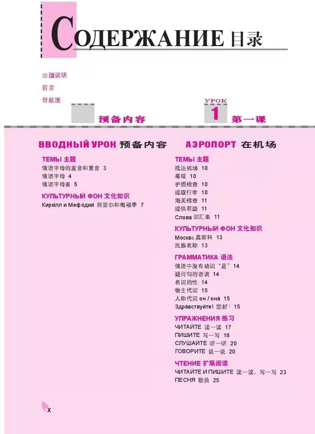 下面为新视线俄语1的目录